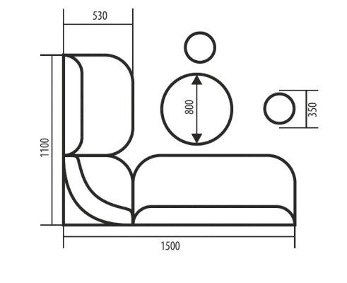 Размер угловой скамьи (ШхГхВ) (1100х1500)х530х880