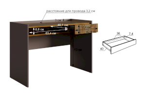 Корпус стола выполнен в цвете кашемир, что придает ему современный и спокойный вид, легко сочетающийся с любым интерьером. Выкатной ящик в цвете "дуб крафт золотой", декорирован принтом, имитирующим вертикальную фрезеровку, что добавляет столу уникальности и роскоши.