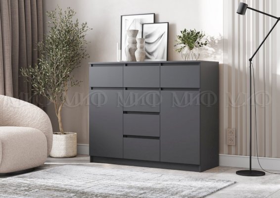 Комод Челси 1200 с 2 дверьми и 6 ящиками (Миф) – товар доступен к покупке в интернет-магазине barnaulskiy-dommebeli.ru. Цена – 9 920 руб. без учета доставки. Стоимость дополнительных услуг и сроки получения мебели уточняйте у менеджера. Возможен безналичный расчет, оплата по карте на сайте.